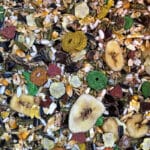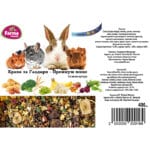 Сено (Алфа-Алфа), пченка, рогач, пченица, овес, јачмен, пченкарни снегулки, шарени крокети од житарки и зеленчук (цвекло), кернели од кикирики, оризово семе, јачмен снегулки, бел сорго, црвен сорго, снегулки од грашок.
