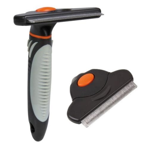 Метален чешел со рачка кој ги одстранува сите мртви влакна од вашето милениче.